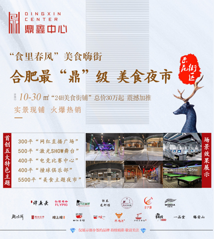 鼎鑫中心“食里春風(fēng)美食嗨街”是鼎鑫集團(tuán)布局合肥主城中央,重資打造的安徽首個(gè)公園主題 “美食夜市”,總規(guī)模6300平米,斥資1500萬(wàn)元,打造合肥最“鼎”級(jí)美食夜市。