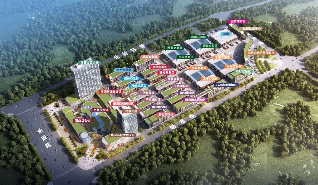 智慧化運營體系孝義農產品大市場項目建成后擁有成熟的智慧化運營管理體系,從科學種植、產品包裝、冷鏈運輸、線上線下結合等方面實現農批市場高效運作。