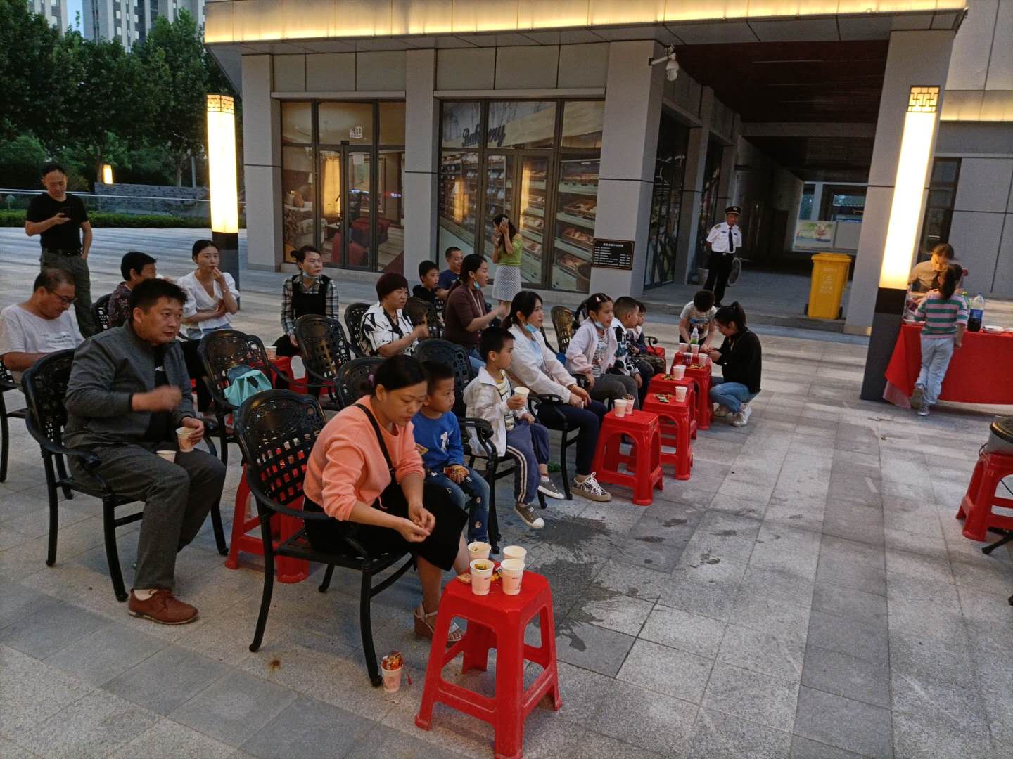 晚上六點,活動即將開始,眾多商戶們攜親友陸續來到觀影現場有序的排隊等候。