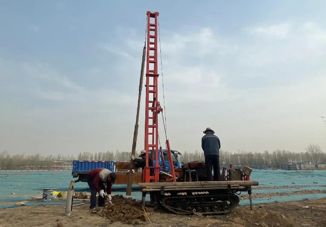 地質勘察過程采用機鉆對地下土層進行采樣,數據分析,評估地下土層的承載力。