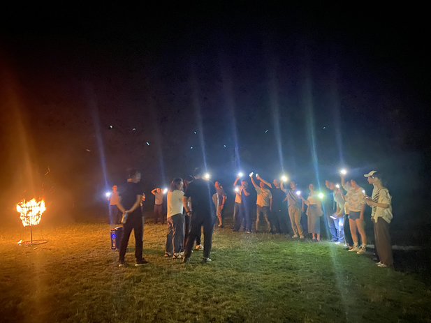 氣氛不斷升溫,現(xiàn)場(chǎng)充滿了歡聲笑語(yǔ)。小伙伴們圍在一起開(kāi)始了篝火晚會(huì)。