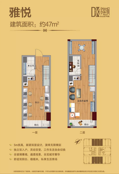 建面約45-70㎡ 5m層高 “雙鑰匙”總裁空間