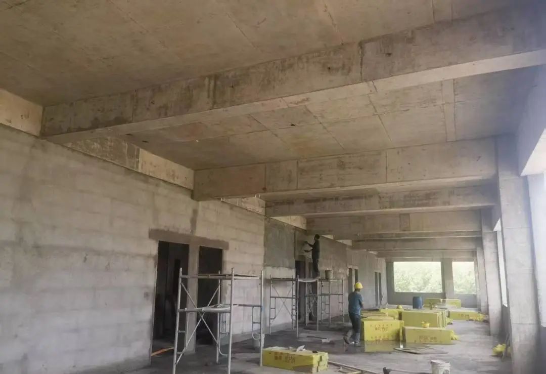 5#樓內墻水電預埋封堵完成,噴漿掛網完成,內墻大面積開始粉刷。 外墻保溫施工完成整體40%。