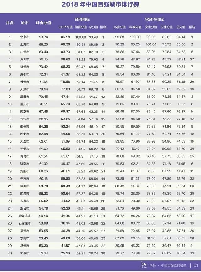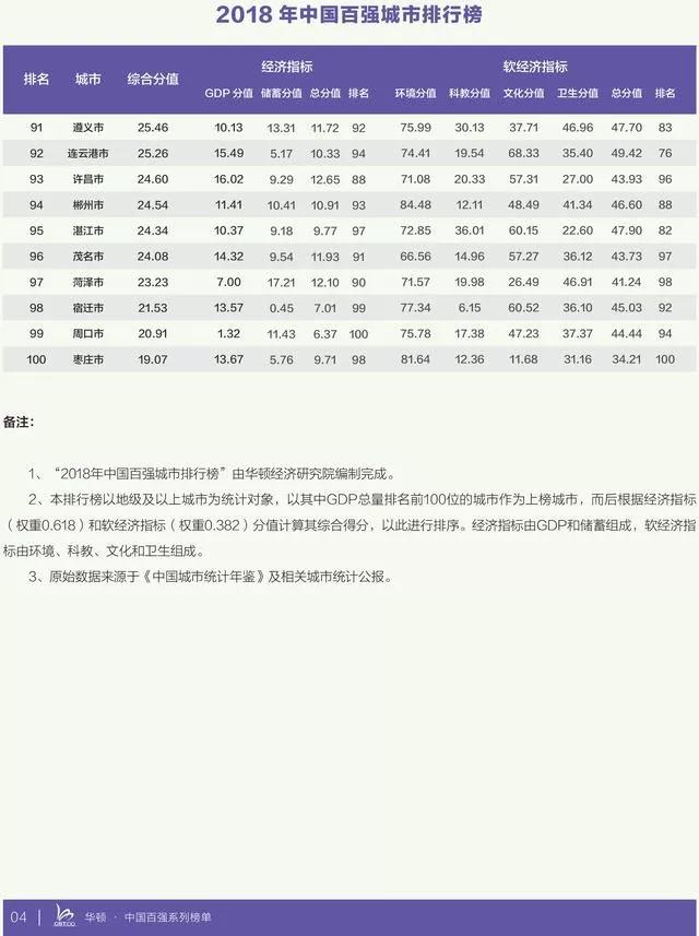 這是華頓經濟研究院連續第四年編制發布“中國百強城市排行榜”數據。中國百強城市排行榜由經濟和非經濟(軟經濟)兩大系列指標綜合而成,數據來源于國家統計局。其中,經濟指標由GDP(國內生產總值)和居民儲蓄兩部分構成,占比61.8%,非經濟(軟經濟)指標由科教、文化、衛生、生態環境四部分構成,占比38.2%。據悉,今年是華頓經濟研究院連續第四次發布年度中國百強城市排行榜。