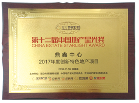 2018年1月,鼎鑫中心榮獲第十二屆中國(guó)地產(chǎn)星光獎(jiǎng)